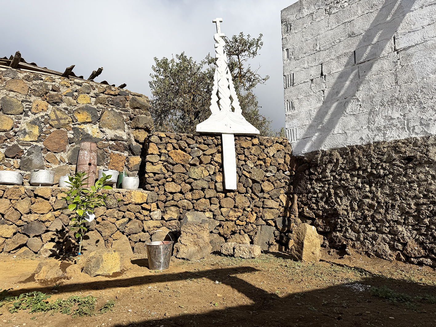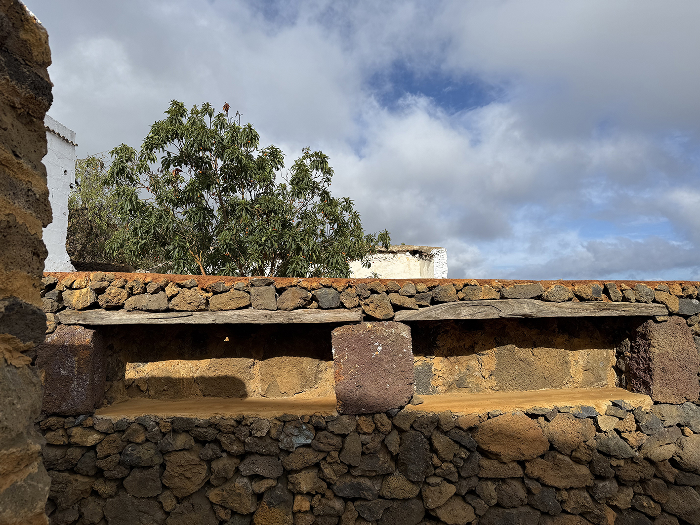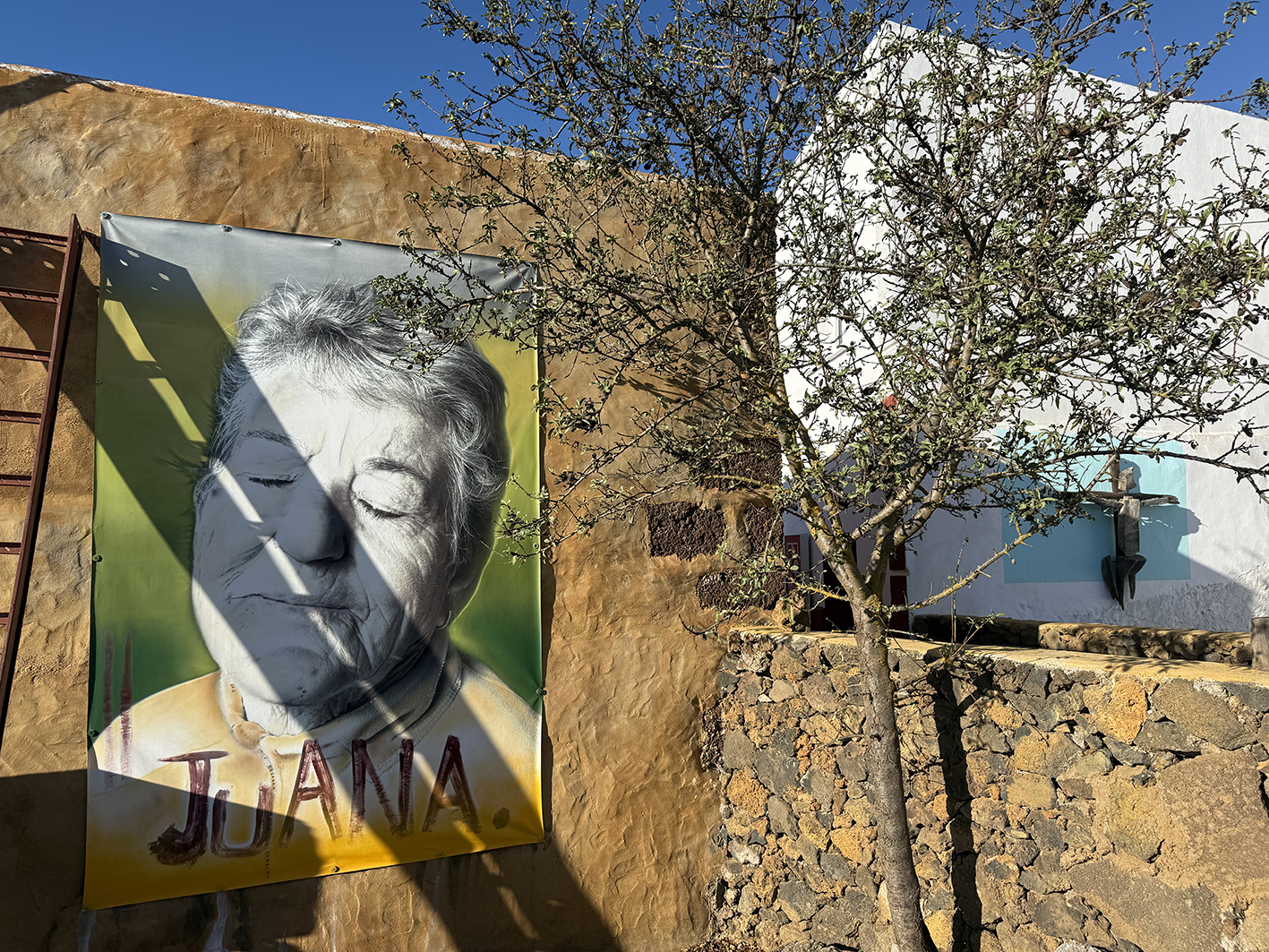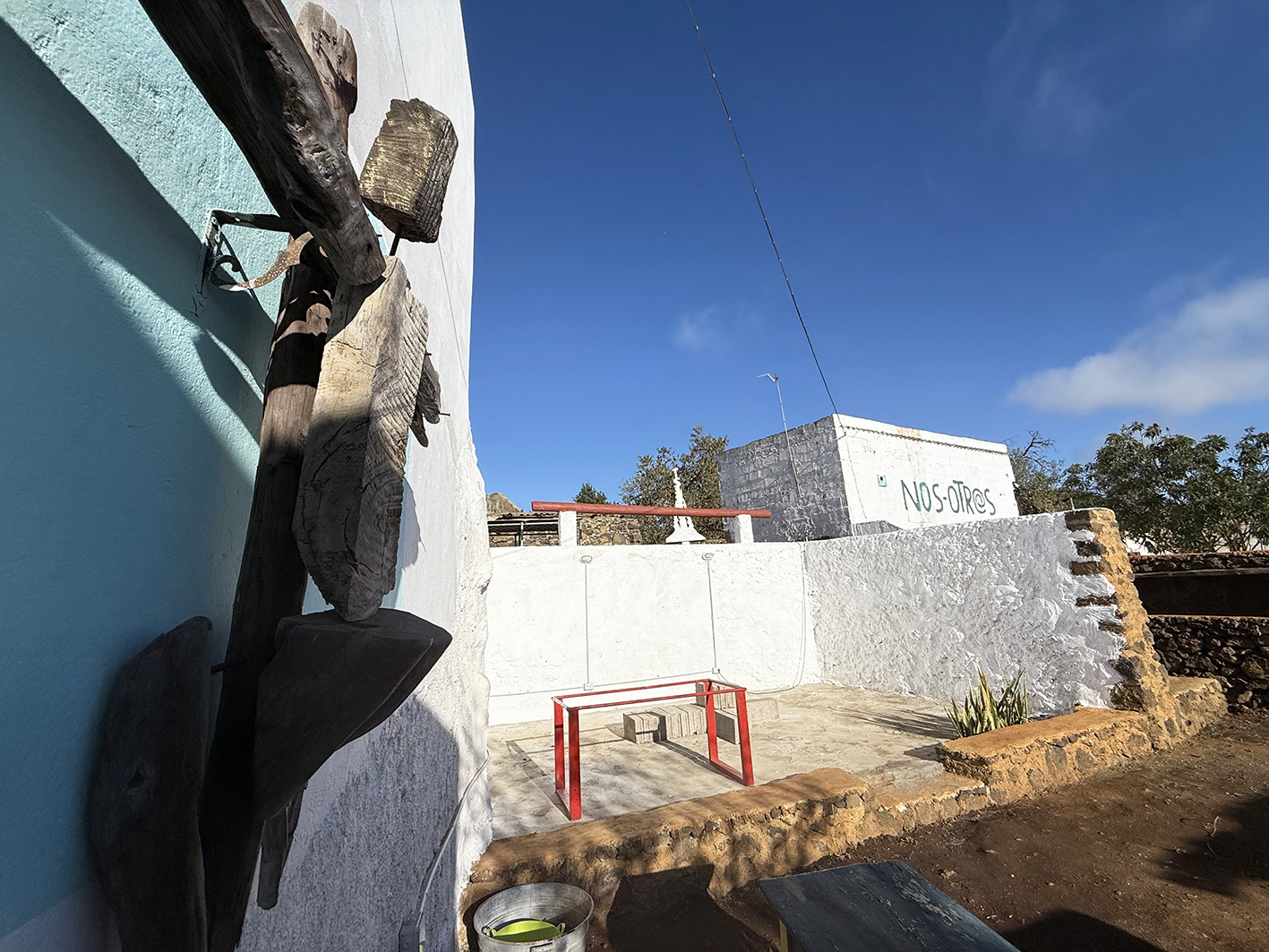 El callejón donde se encuentra Casa Juaclo es un pequeño universo propio, un pasaje íntimo donde la vida rural y la creación conviven sin prisa. Aquí, cada paso descubre algo, tipologías de paredes, una Litoteca Cromática, que guarda los colores de la tierra herreña como si fueran un archivo vivo o la pequeña sala de exposiciones, donde se muestra el paisanaje insular. Los huertos, que crecen en silencio y ofrecen sus aromas y sabores al visitante, el gallinero, que marca el despertar cada día y las intervenciones artísticas que surgen entre paredes, rincones y plantas, recordando que este callejón es también un espacio para imaginar.