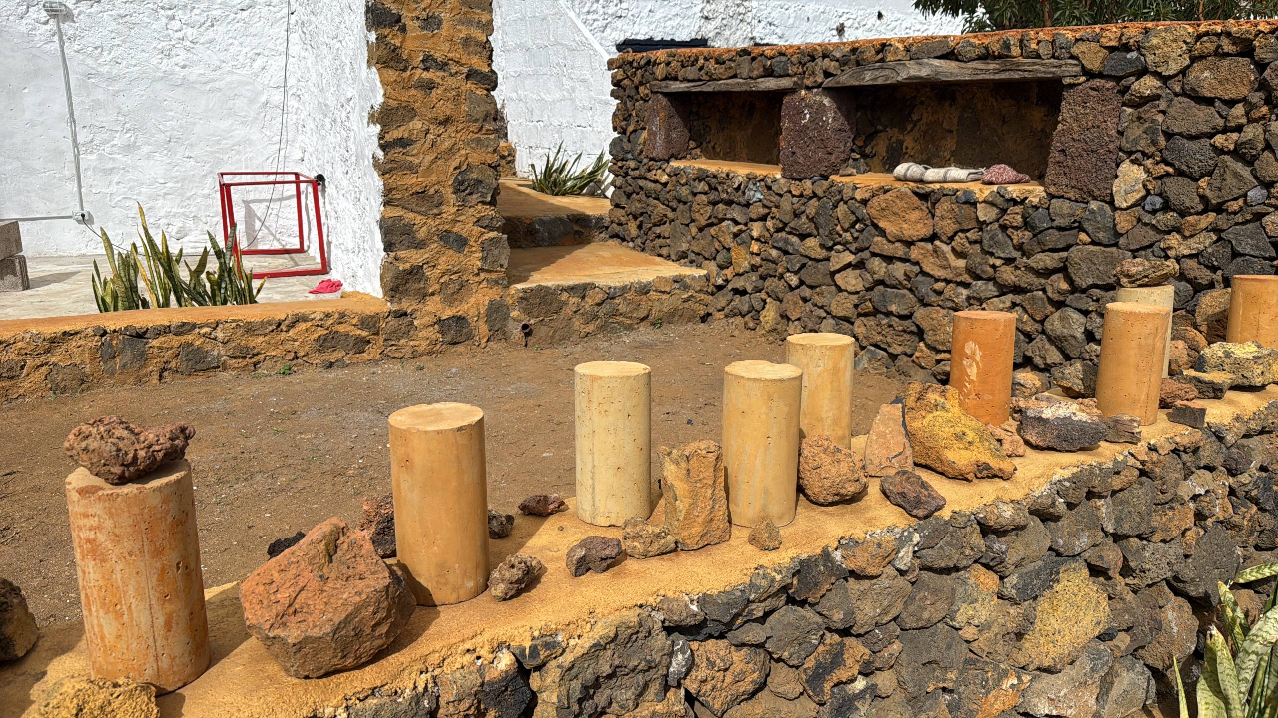 The alley functions as a small laboratory where the Isla de Ferró Project becomes visible and approachable. A place where the visitor can intuitively and sensorially understand how this project articulates the island through respect, attentive listening, and beauty. Here, tradition and experimentation coexist on the same scale as the territory: human, humble, and deeply connected to the land. Scattered throughout the alley we have a large collection of stones, a chromatic lithotheca that reveals the chromatic richness and geological diversity of the island. Interpreting the alley also means taking a glimpse into the Isla de Ferró Project. Every space, every gesture, and every intervention that inhabits it is part of a broader reading of the territory and of Herreño identity.