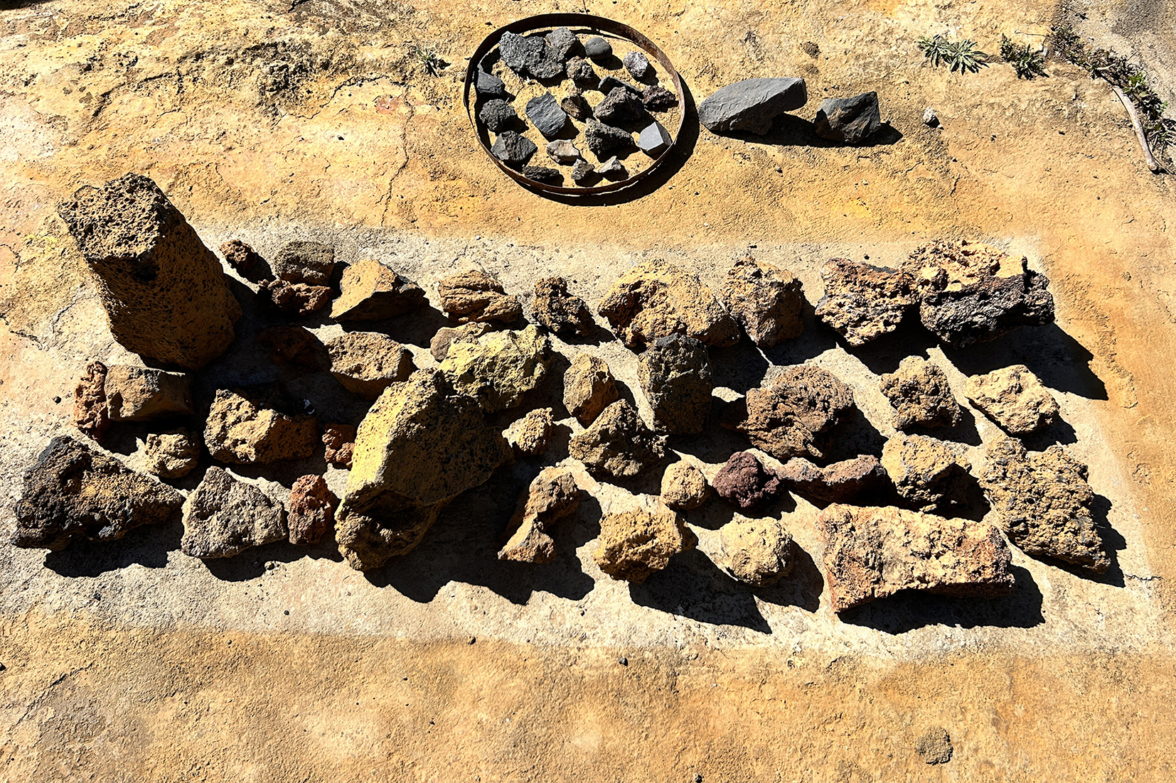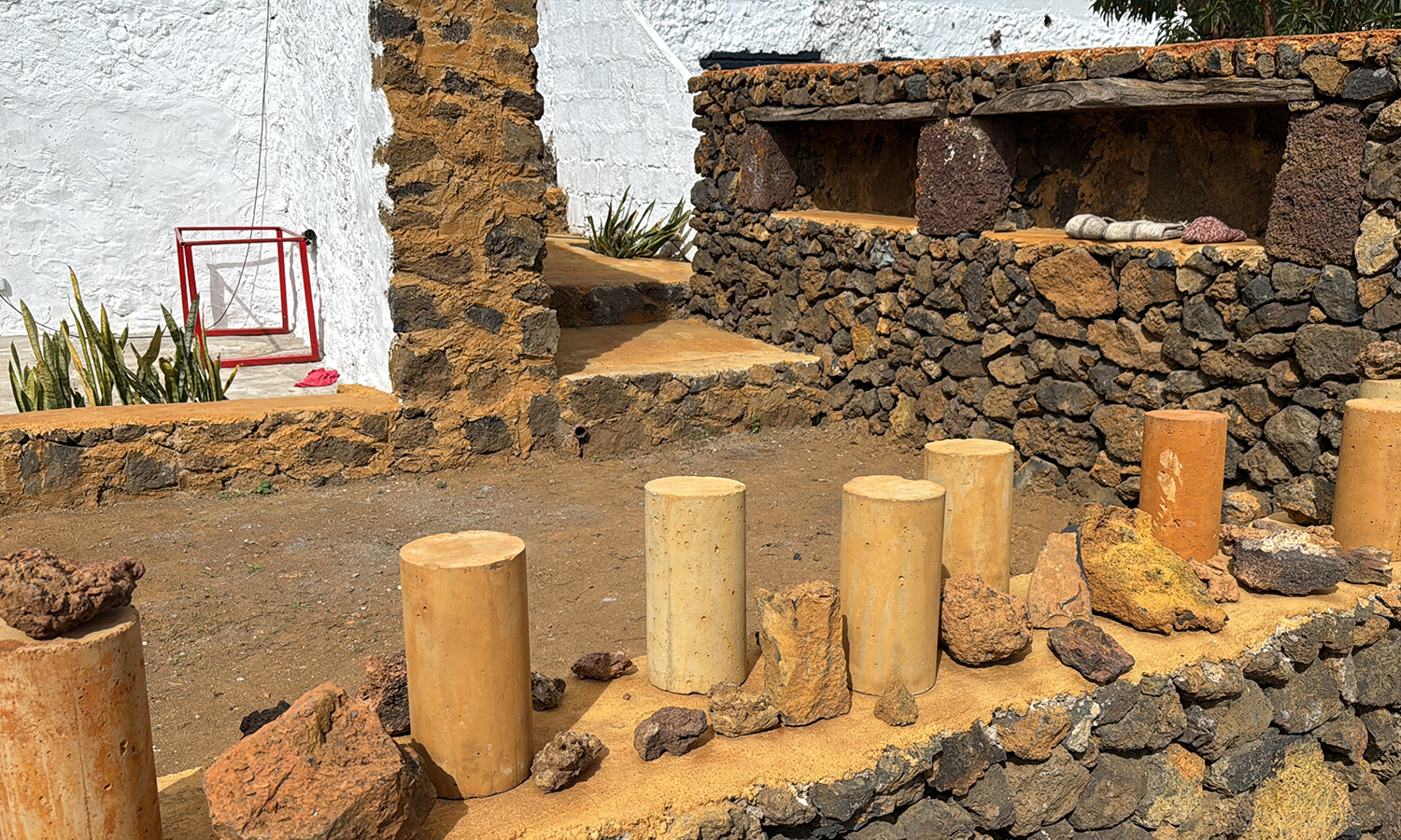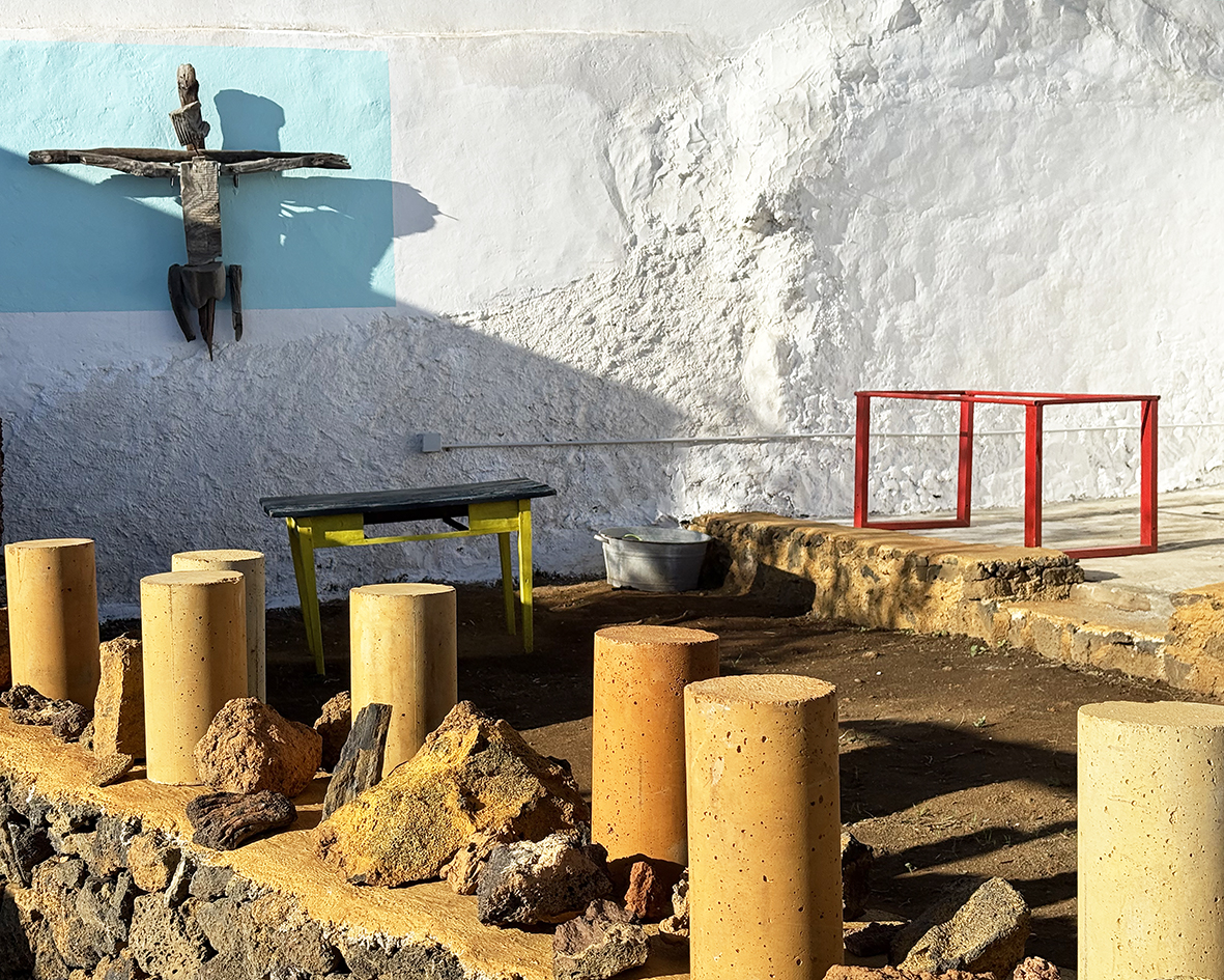 El callejón funciona como un pequeño laboratorio donde Isla de Ferró se hace visible y cercano. Un lugar donde el visitante puede comprender, de manera intuitiva y sensorial, cómo este proyecto articula la isla desde el respeto, la escucha y la belleza. Aquí, la tradición y la experimentación conviven a la misma escala que el territorio, humana, humilde y profundamente conectada a la tierra. Disperso en el callejón tenemos una gran colección de piedras, una lito teca cromática que nos muestra la riqueza cromática y la diversidad geológica de la isla. Interpretar el callejón es también asomarse al Proyecto Isla de Ferró. Cada espacio, cada gesto y cada intervención que lo habita forma parte de una lectura más amplia del territorio y de la identidad herreña.