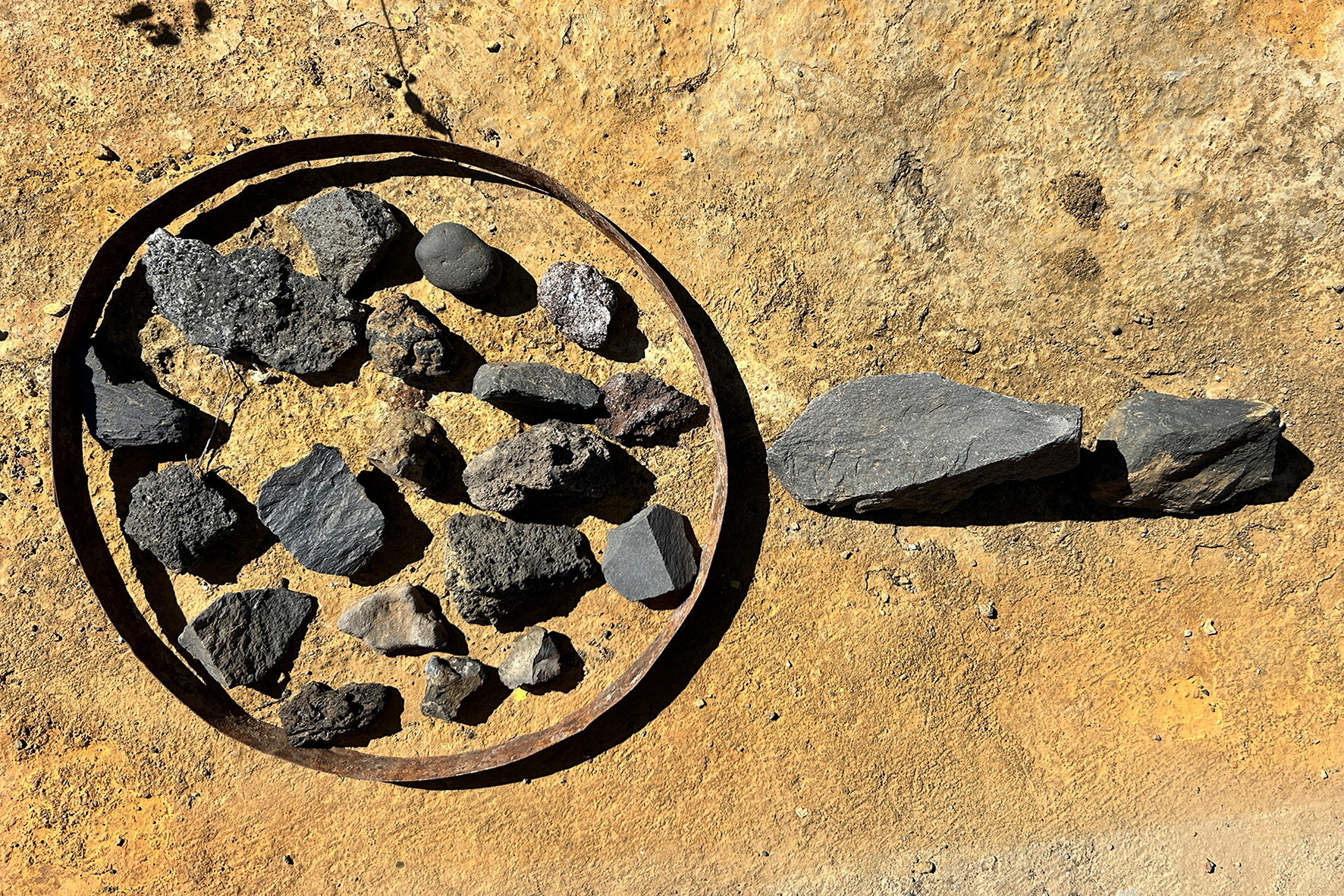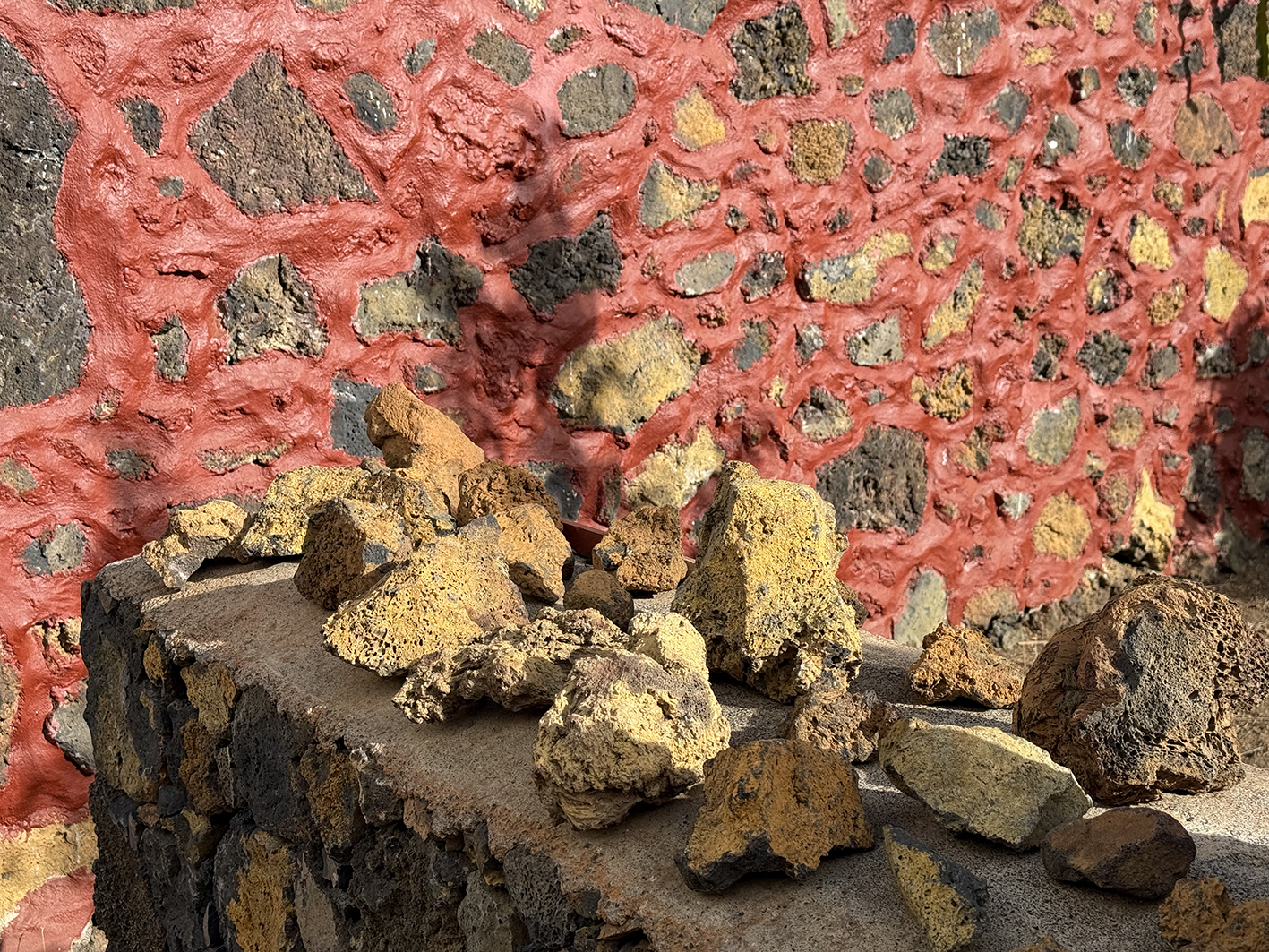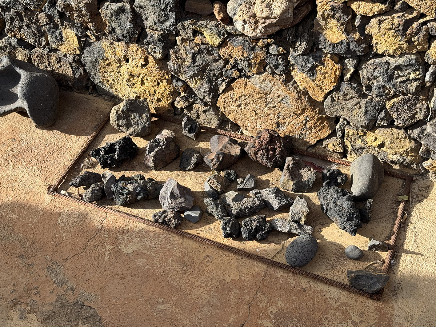 El callejón funciona como un pequeño laboratorio donde Isla de Ferró se hace visible y cercano. Un lugar donde el visitante puede comprender, de manera intuitiva y sensorial, cómo este proyecto articula la isla desde el respeto, la escucha y la belleza. Aquí, la tradición y la experimentación conviven a la misma escala que el territorio, humana, humilde y profundamente conectada a la tierra. Disperso en el callejón tenemos una gran colección de piedras, una lito teca cromática que nos muestra la riqueza cromática y la diversidad geológica de la isla. Interpretar el callejón es también asomarse al Proyecto Isla de Ferró. Cada espacio, cada gesto y cada intervención que lo habita forma parte de una lectura más amplia del territorio y de la identidad herreña.